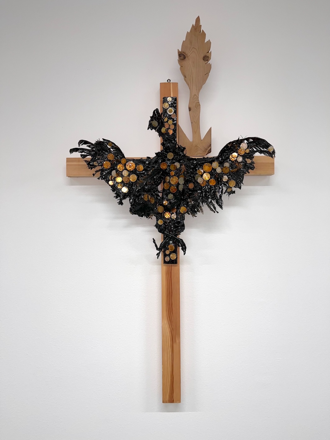 leaf I carved from wood. We have caused the sixth mass extinction, so in a way you could say that we have nailed other living species to the cross. There they hang and suffer on our behalf. |