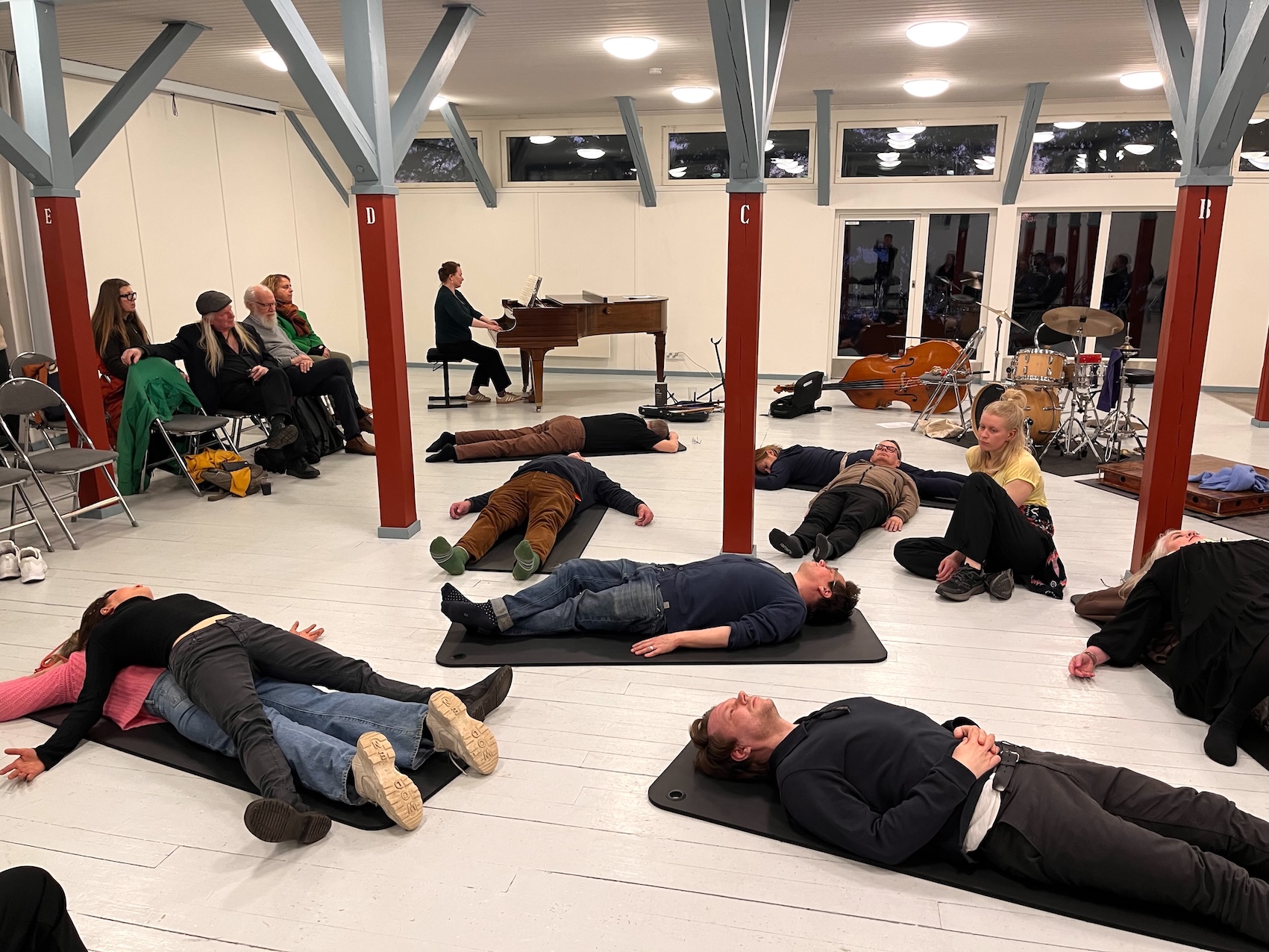 Innanen on sax, Joonas Riippa on drums, Marja Rautakorpi & Meri Pajunpää dancing.Training 27.3.2026: Marja Rautakorpi, Mikko Innanen, Joonas Riippa.TRAINING FOR DEATH, Pispala Church, Tampere, Finland, 2.11.2024.TRAINING FOR DEATH, Pispala Church, Tampere, Finland, 2.11.2024.TRAINING FOR DEATH, Pispala Church, Tampere, Finland, 17.5.2025.Meri Pajunpää dancing in the working group's demo, 2025.Marja Rautakorpi and Meri Pajunpää dancing in the working group's demo, 2025.Teemu Mäki: After the Last Human Comes the First Owl-Human.